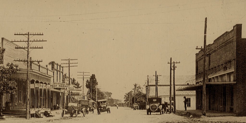 Originally, a wooden mercantile store was located on this site, serving as a hub for commerce in Martindale. Around 1918, along with the rest of the town, the building unfortunately burned down in a devastating fire set off by the cotton gin’s hydro-electric power plant. The structure was destroyed, along with much of the surrounding area.